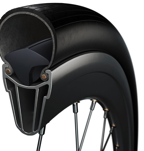 Le proprietà ammortizzanti dell’inserto riducono inoltre le vibrazioni della bicicletta del 45%. Questo si traduce in una guida più confortevole, consentendo anche pressioni degli pneumatici più basse: l’ideale per le lunghe uscite di allenamento o per le sempre frequenti competizioni endurance.