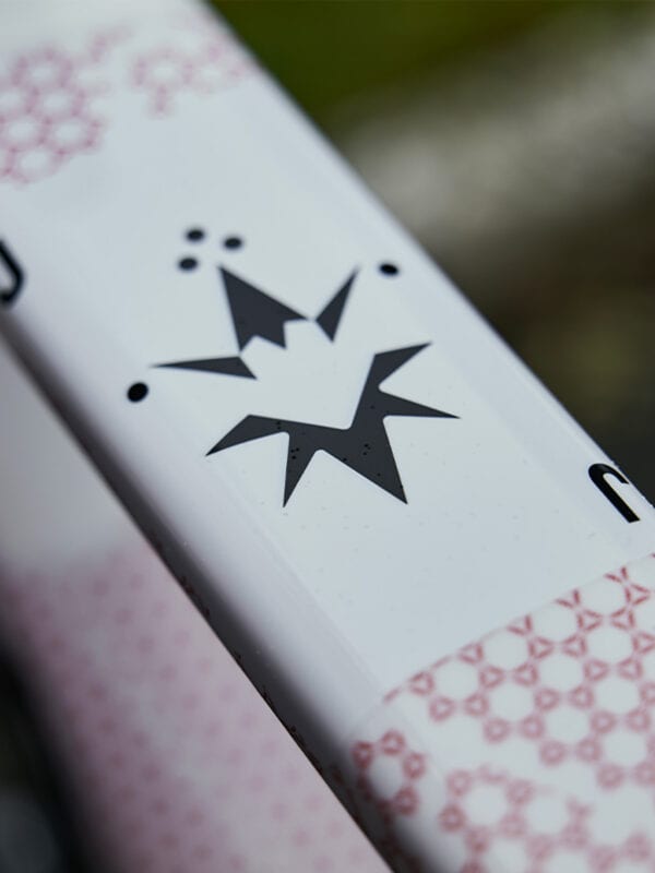 Il disegno sulla Ultimate CF SLX 8 Disc TDF ha una fantasia particolare, infatti il motivo del telaio è quello di un mazzo di carte, con il simbolo del Joker sul tubo centrale (foto di apertura). Simbolo che sembra richiamare anche un ermellino stilizzato, per rendere omaggio alla regione di partenza, la Bretagna.