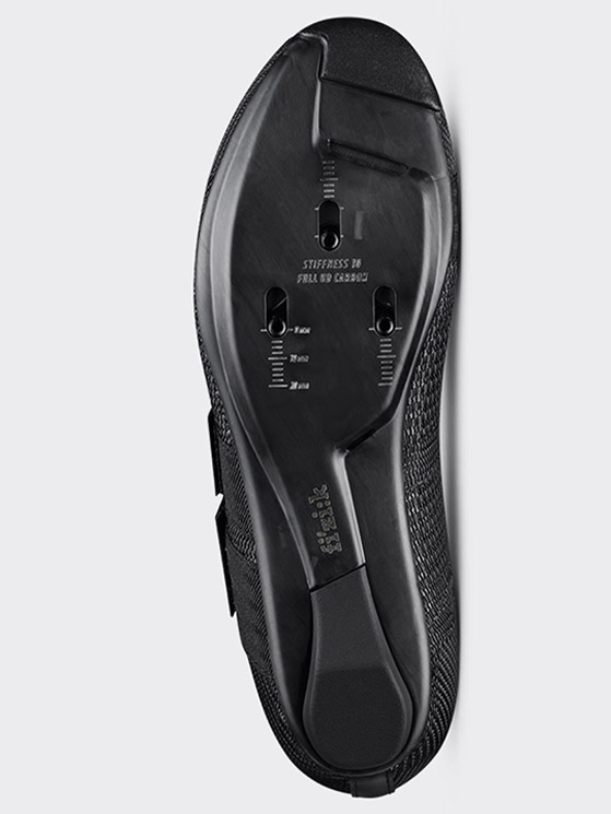 Fi’zi:k ha rinnovato anche la suola, la nuova R2, completamente in carbonio consente un maggior risparmio di peso garantendo una rigidità fuori dal comune. Inoltre, la tacchetta è stata spostata leggermente in avanti, ciò è possibile solamente grazie alla suola più rigida, la combinazione di questi due elementi permette un trasferimento della forza sempre più alto e performante.