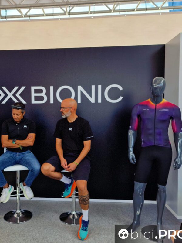 «Noi sudiamo – spiega Bourifa – perché il nostro corpo supera i 37 gradi. Spesso il sudore si accumula lungo il corpo provocando un fastidio non indifferente. Capita a tutti, nonostante si pedali in condizioni ideali dal punto di vista del clima, di sentire freddo in alcune parti del corpo. Questo perché il sudore si accumula e non viene assorbito dall’abbigliamento. E’ qui che interviene X-Bionic, che grazie all’abbinamento di filati particolari riesce a lavorare con le varie densità. In modo tale che il sudore possa uscire dal corpo ed evaporare senza subire cali di temperatura».