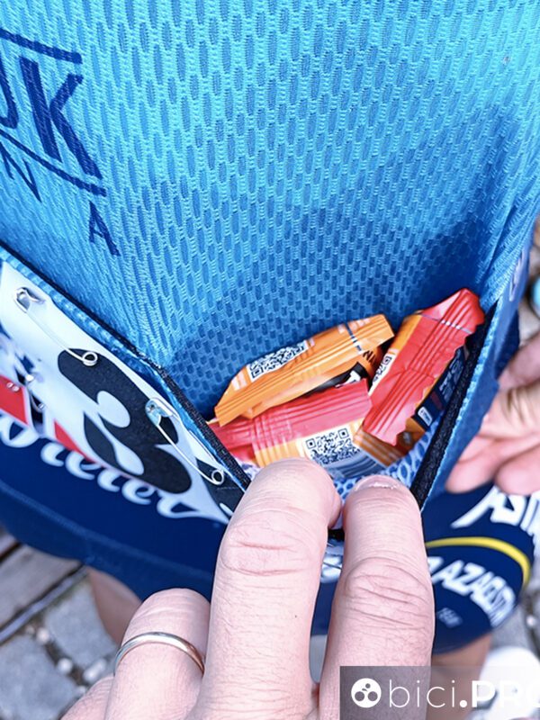 «Parto – dice Mattia – con tre gel da 45 grammi di carbo l’uno e due caramelline che ne contano quasi 30. A questo aggiungo una borraccia da 90 grammi da un’ora e mezza. Ma nelle tappe più esigenti aumento un po’ i carbo. Quindi una borraccia l’ora da 60 grammi di carbo per arrivare ai 110 grammi l’ora con il gel o la mezza barretta. Ma personalmente mi aiuto molto con le caramelle che si deglutiscono facilmente».