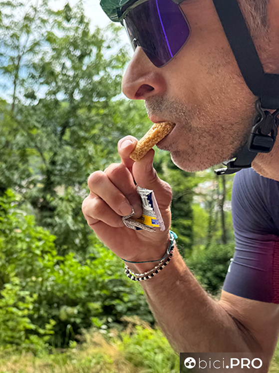 Non è eccessivamente dolce, attiva una leggera salivazione ed invita ad un paio di sorsi dalla borraccia dopo l’assunzione. Non ha l’effetto immediato di un gel, ma il supporto energetico si sente eccome.
