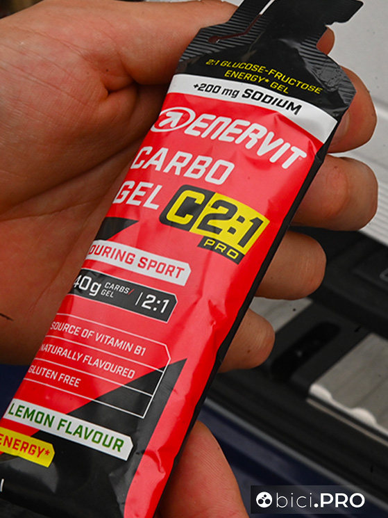 Esattamente, si tratta di una soluzione molto comoda. Hai energia e sodio direttamente nella stessa borraccia. Quindi diciamo che in linea di massima, quando una tappa è molto calda e si suda tanto, si cerca di stare intorno almeno ai 400-500 milligrammi di sodio per ora. E’ una quota indicativa, perché il livello è variabile da corridore a corridore, quindi va personalizzata. Comunque non è difficilissimo arrivarci, perché ad esempio bastano due gel e sei già 400 milligrammi. La cosa più importante rimane comunque riuscire a idratarsi bene e non perdere troppi liquidi durante la tappa. Perché poi si paga, soprattutto nel finale quando la percentuale di disidratazione è più alta. Quindi in realtà diciamo che il sodio va integrato in funzione di quanto una persona beve.