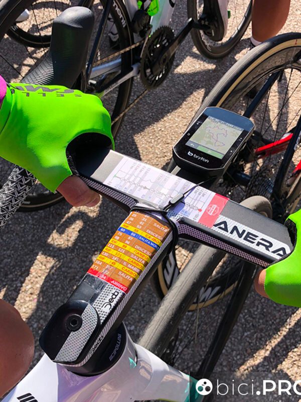 La Strade Bianche è una gara che include delle variabili non comuni alle competizioni che si svolgono nel Sud dell’Europa. Il percorso non concede un attimo di respiro, con lo sterrato e la polvere, ma anche il clima e il forte vento. Abbiamo chiesto a Filippo Zana della Bardiani-CSF come abbia approcciato la manifestazione toscana in fatto di strategia alimentare: prima, durante e post gara. Nella foto di apertura è evidente come il corridore veneto si fosse appuntato sul manubrio i vari passaggi anche in relazione all’alimentazione.
