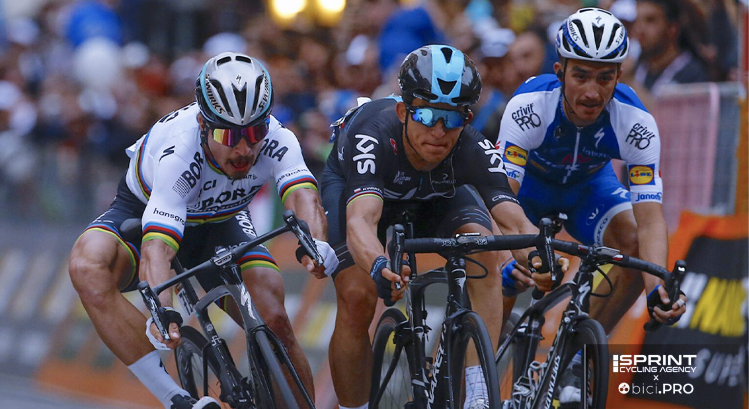 E il corridore della Ineos-Grenadiers è davvero bravo, pur non essendo un velocista puro, ma avendo corso per anni su pista. Basta ricordare la Sanremo del 2017 vinta in quel mitico arrivo a tre con Sagan e Alaphilippe (foto di apertura). Forse i brevilinei sono più abili nell’eseguirlo. Il vantaggio è che sono più rapidi, lo svantaggio è che hanno meno leva una volta lanciata la bici.