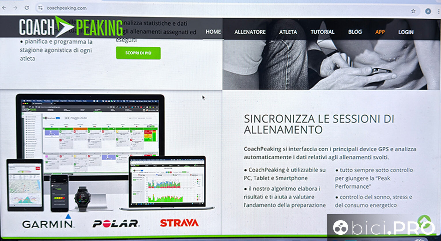 Dal 2021 uso CoachPeaking, un portale per atleti e coach, sviluppato per facilitare la traduzione degli allenamenti. Dal punto di vista del preparatore uno dei vantaggi di CoachPeaking è la gestione differenziata del training, che può essere individuale, molto usata nell’ambito del triathlon, oppure individuale e come team, più usata nel ciclismo.