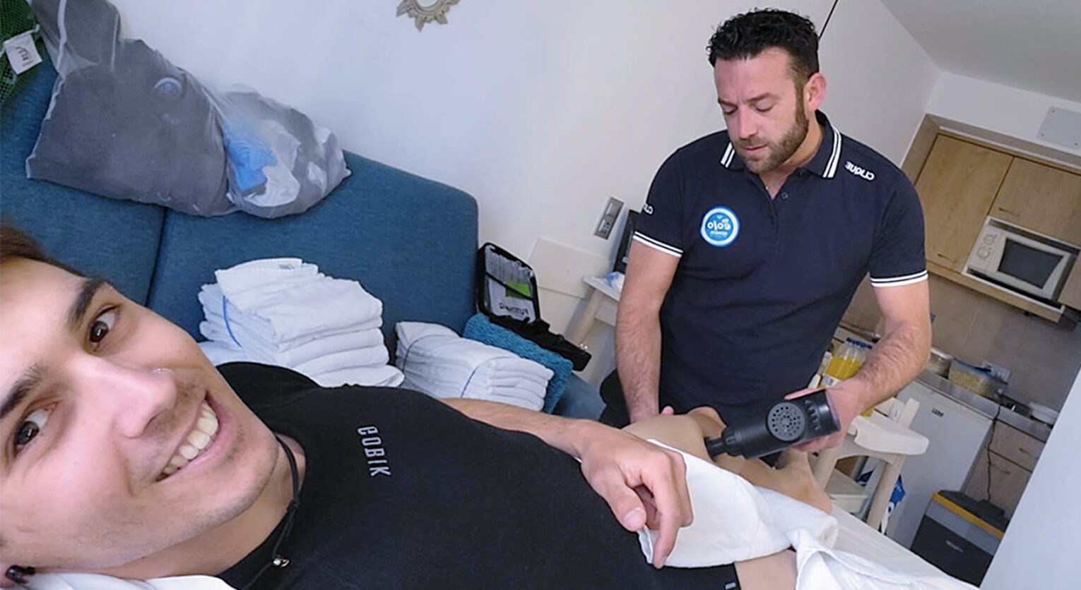 Solitamente in ritiro facciamo i massaggi quasi tutti i giorni (nella foto di apertura Diego è con il suo massaggiatore, Carmine Magliaro). Io poi la sera faccio degli esercizi di core zone tutti i giorni. Molto spesso poi utilizzo la “pistola a percussione” per sciogliere un po’ i muscoli.