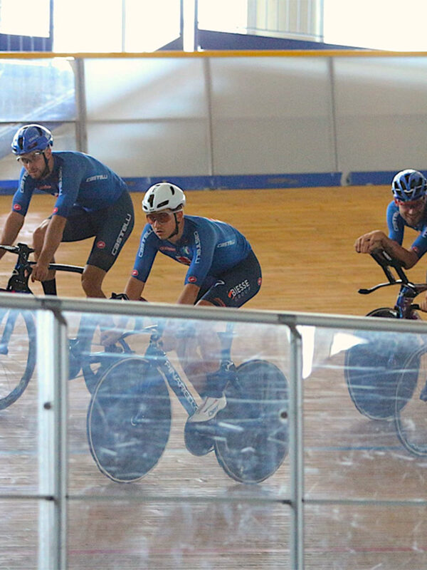 Più si va a ridosso dell’appuntamento “X” e più ci si avvicina ad un modello prestazionale simile a quello della gara. Intensità molto alte con recuperi decisamente ampi. Alla fine la giornata in pista, o comunque la sessione di lavoro, può essere anche molto lunga proprio perché si recupera molto. In questa fase bisogna appunto rifinire. In altri momenti invece accorciare i tempi di recupero fa parte dell’allenamento. A Montichiari abbiamo simulato delle gare, sia con il quartetto che con gli atleti della corsa a punti. E per fare questo c’erano anche gli altri ragazzi.