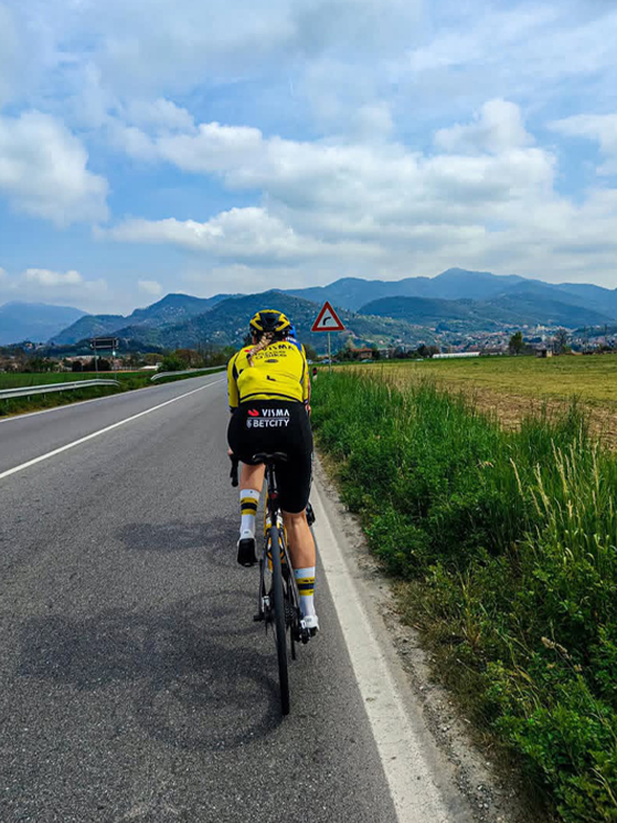 In inverno le ore di luce sono poche e ho orari “obbligati” mentre adesso che è estate preferisco uscire la mattina e poi il pomeriggio tardi, intorno alle 17 e avere un recupero più lungo. A livello di alimentazione mi affido alla nutrizionista della squadra, usiamo un’applicazione che si chiama Food Coach. Noi troviamo i macronutrienti da assumere in base a quello che consumi in allenamento. Cosa mangiare lo decidiamo noi.