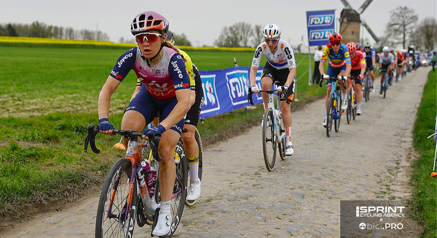 E io, consapevole che sia adatta a quelle corse, le ho dato qualche consiglio. Ero consapevole che non avessimo una squadra per chiudere sugli attacchi delle altre, soprattutto alla Roubaix, e che lei non potesse seguirle tutte. Al Fiandre siamo andati bene e tutto sommato anche alla Roubaix finché le gambe hanno tenuto.