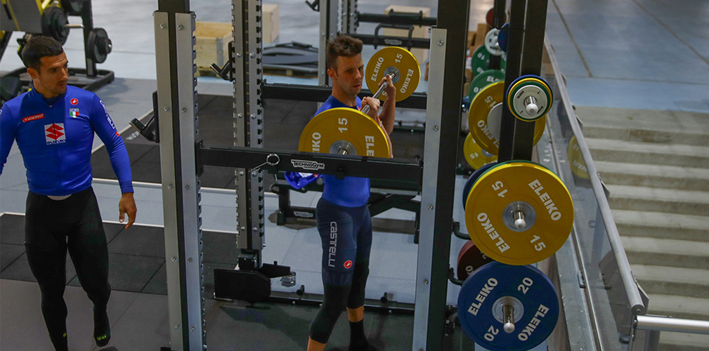 Tanta salita e tanta palestra, ogni due giorni. Squat, pressa e balzi. Non abbiamo fatto la forza in bici, solo a secco e con carichi importanti. Parliamo di 4-5 serie di squat con 3 ripetute al 90-95% del massimale. Ne uscivo con le gambe massacrate. I primi due giorni all’arrivo sono stati blandi, dal terzo si è cominciato con questo regime.
