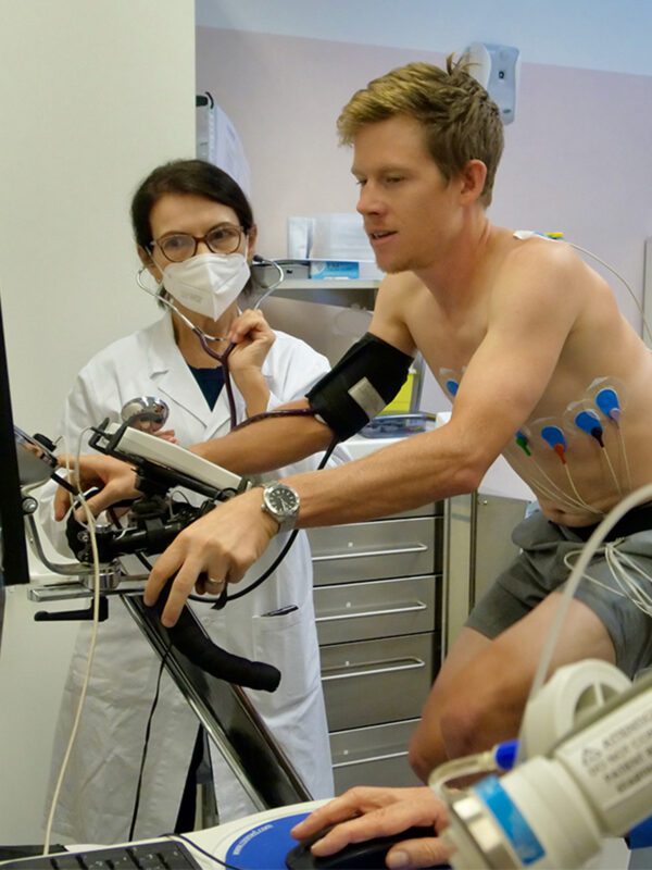 Innanzitutto si procede a una valutazione generale in base all’esame obiettivo, si fa un esame completo del sangue e delle urine, poi si procede alla valutazione cardiologica attraverso un esame ecocardiografico e poi all’elettrocardiogramma a riposo e sotto sforzo. Questo cambia però nel caso degli atleti professionisti rispetto a chi pratica il ciclismo amatorialmente.