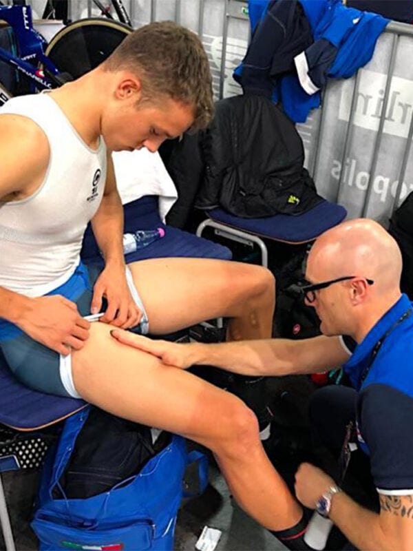 «L’80 per cento degli strumenti restano le mani, poi c’è tutto il resto. E in questo resto metto anche ricerca ed entusiamo. La voglia di scoprire, di dare e fare qualcosa di più. E per farlo serve entusiasmo. Con la nazionale per esempio abbiamo sviluppato il kinesiotaping, sapete quei nastri colorati che sempre più spesso si vedono sui muscoli dei ragazzi? Se avete notato non sono più solo lineari ma anche a “cerchi”. Migliorano il recupero, lo smaltimento dell’acido lattico, aiutano i recettori muscolari. E questo è stato frutto di laboratorio con la nazionale. E non ci fermiamo. Lo estenderemo anche a tutto il resto del corpo».