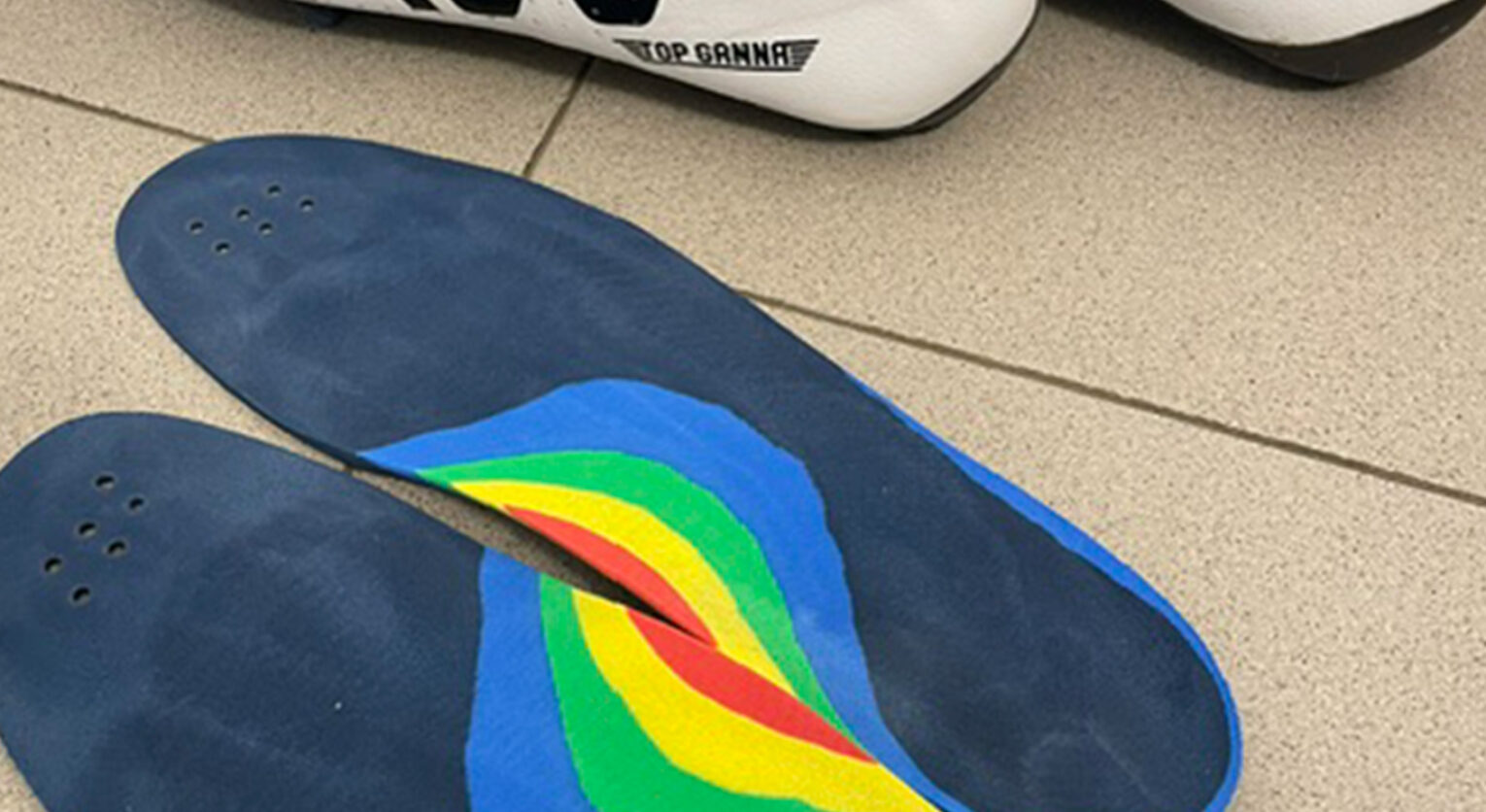 Dopo un’attenta valutazione che comprende visita biomeccanica podologica, videografia posturale, baropodometria statica, dinamica e soprattutto durante la pedalata reale con la bici del cliente, utilizzo solo due tecnologie, sempre su calco individuale del piede. Plantare in EVA medicale ad alta densità fresato CAD-CAM: lo scelgo per il 95 % dei casi. E’ rigido, leggerissimo, ha uno spessore minimo. L’altra soluzione è la stampa 3D in nylon caricato al carbonio. Quest’ultima è riservata a chi sviluppa potenze molto elevate o necessita di correzioni importanti. Il rivestimento superiore è sempre in EVA per evitare micro-movimenti e garantire comfort anche dopo centinaia di chilometri.
