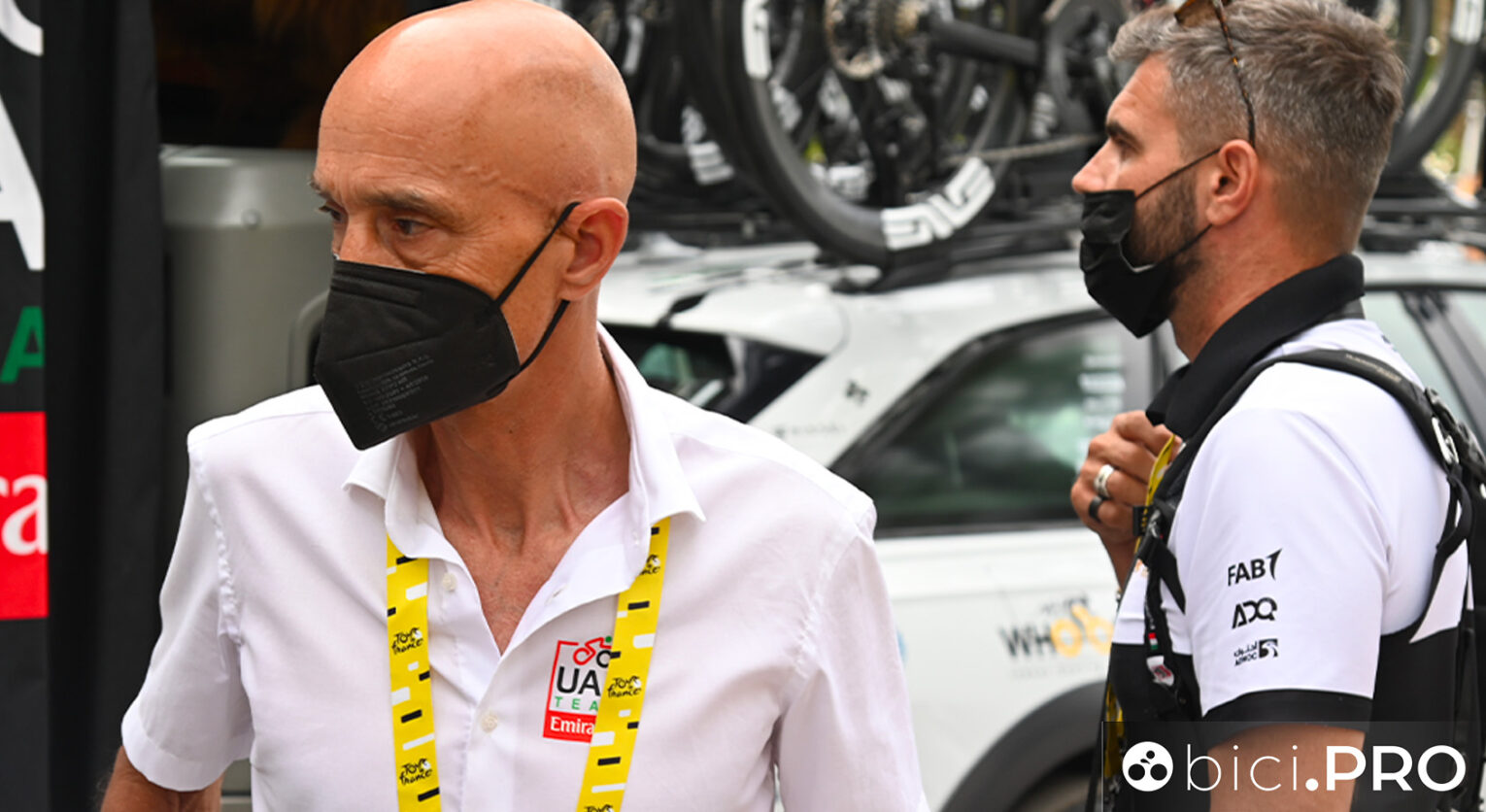 Al UAE Team Emirates per il Covid hanno dovuto rinunciare ad Ayuso e non osiamo pensare quanto sarebbe stata devastante la squadra di Pogacar avendo tra le sue file anche lo spagnolo. Recalcitrante e dotato di un ego importante, Juan resta comunque un signor atleta e al Tour teneva tanto. Perciò, per capirne di più, ci siamo rivolti ad Adrian Rotunno, il medico della squadra emiratina. Magari non abbiamo scelto il momento migliore per farlo, dato che sul bus si stava pianificando la tattica per il giorno di Isola 2000. Eppure, visto come è andata a finire, si può dire che gli abbiamo portato anche fortuna (in apertura, Mauro Gianetti e il fotografo Lorenzo Fizza Verdinelli).