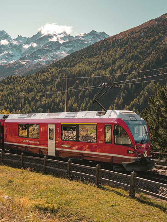 Per un turismo slow e amico dell’ambiente, è tutto rigorosamente fruibile sia in bicicletta che in autobus e in treno. Per godere dei più bei paesaggi svizzeri infatti oltre che sull’Autopostale, immancabile è il viaggio a bordo del Trenino Rosso del Bernina, patrimonio UNESCO e tra le tratte ferroviarie più alte d’Europa. Per le due ruote sono presenti noleggi bici spalmati su tutto il percorso per poter godere di una vacanza spensierata e leggera.