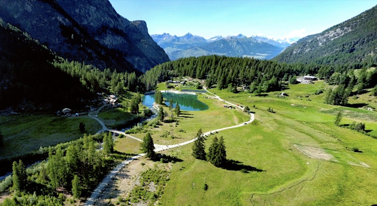 La Clavalité è un pianoro a 1.515 metri di quota. Prati verdi, cime innevate sullo sfondo, un laghetto, malghe ristrutturate secondo i vecchi dettami e i materiali della natura… Nessun traliccio, nessun segnale telefonico. Qui si è scelto per questo tipo di sviluppo. C’è solo una lingua di strada sterrata e il gorgoglio del torrente Clavalité. Unico.